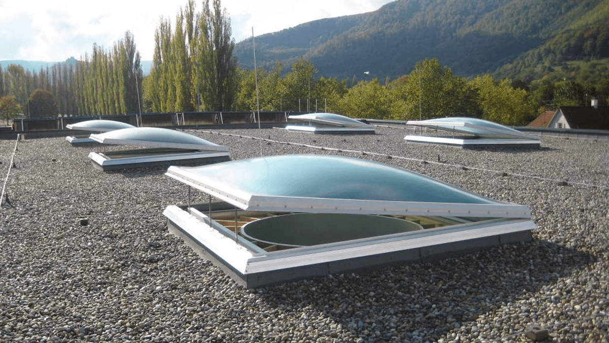 The design of the Rooflights F100 lets the SHEV system and ventilation technology seem invisible from the ground.